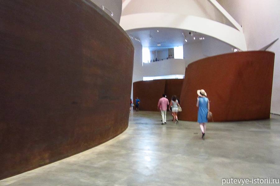 Признаюсь, что и само здание музея Гуггенхайма не доставило мне эстетического удовольствия. Посимпатичней, конечно, парижского Центра Помпиду, но сказать, что оно вызвало восхищение, не могу.