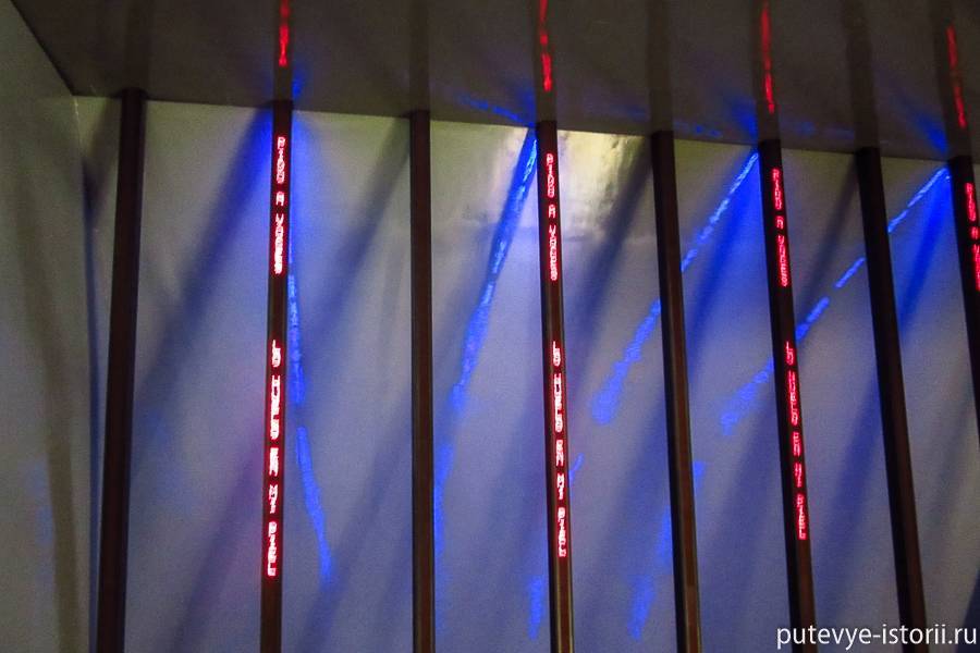 Вдоль одной из стен — вертикальные бегущие строки