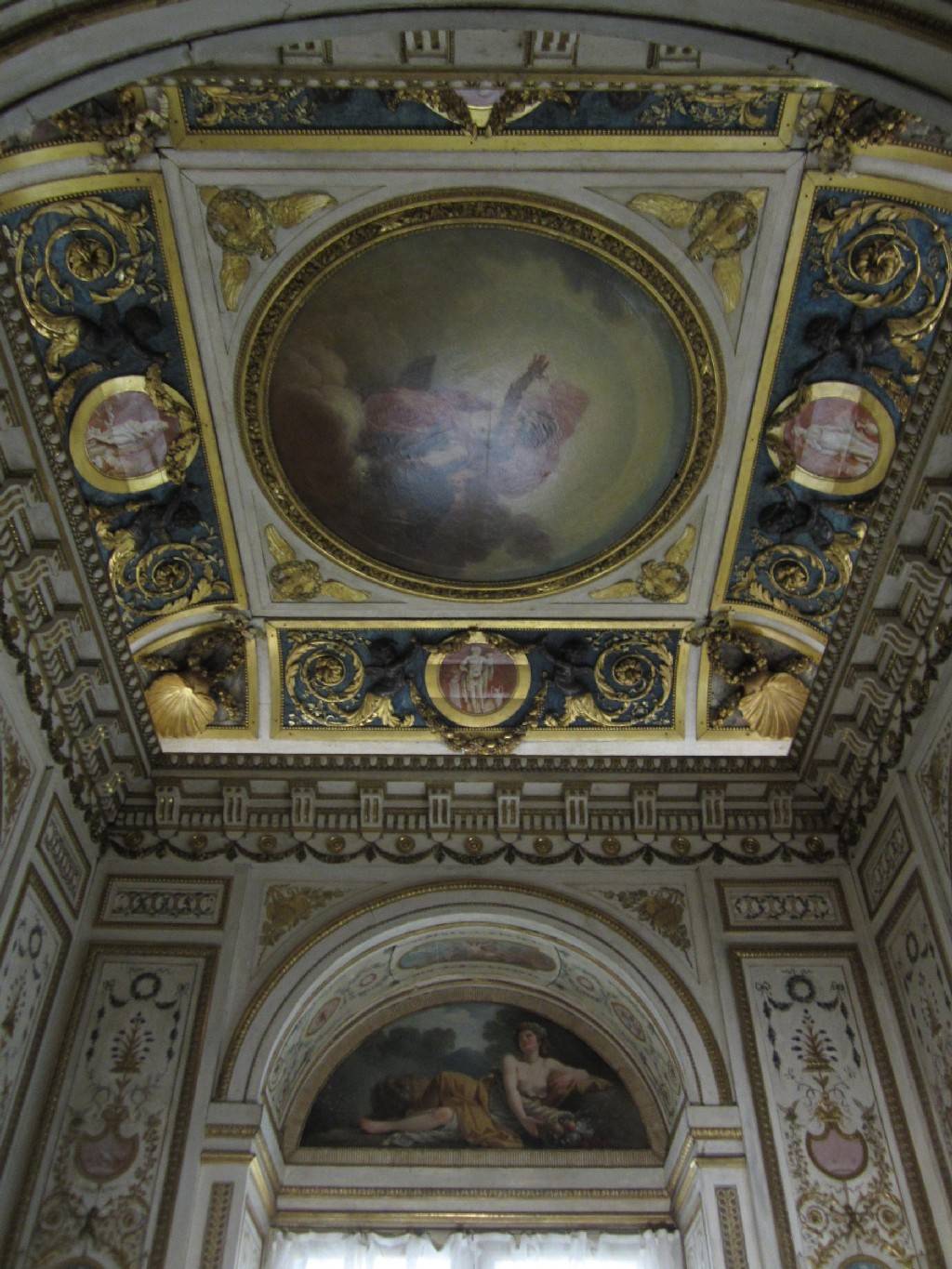 Декоративная схема была разработана и нарисовал Жюль-Хагс Руссо, также известный как братья Руссо. Они известны своей работы на квартиры Марии-Антуанетты в Версале (1772) и Королевы щедрыми будуар Turc в Шато де Фонтенбло (1777), к юго-западу от Парижа.