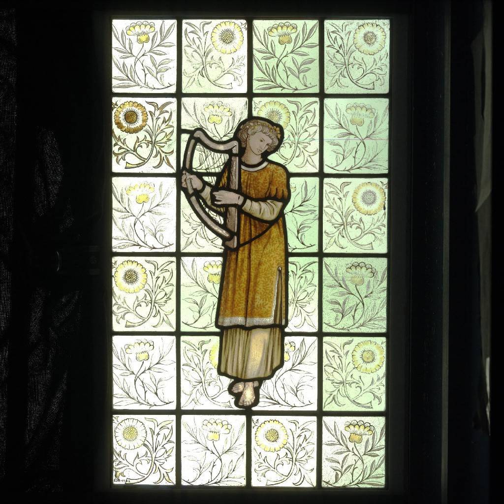 Уильям Моррис. Витраж, женщина, играющая на арфе 1872-1874
