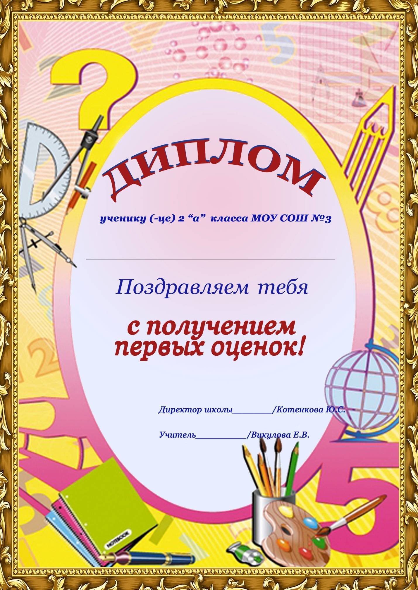 «За получение первых оценок»;