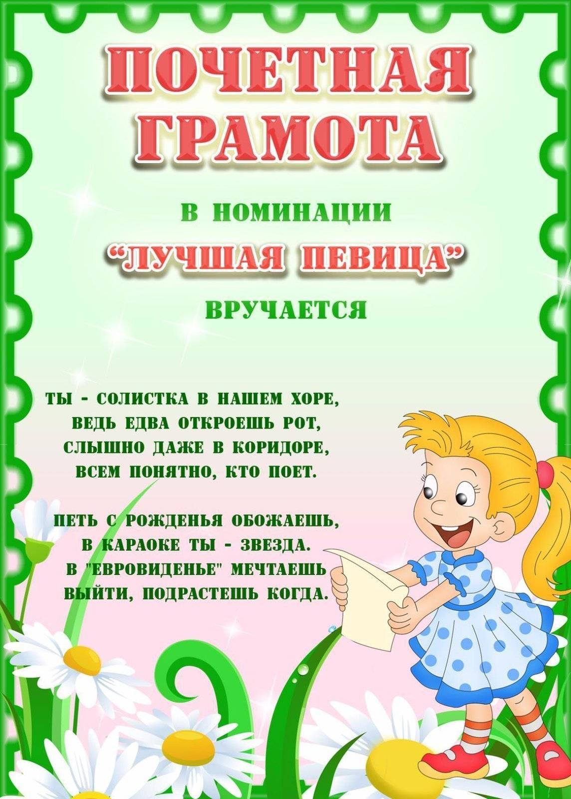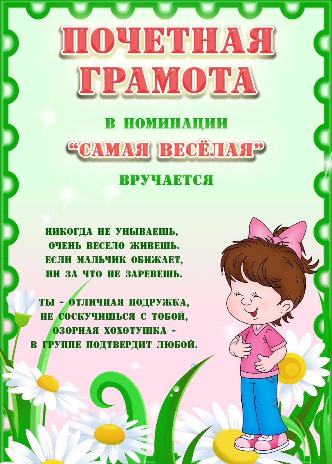 Выпускной в школе и в детском саду отличается только возрастной группой детей. В остальном, праздники схожи между собой: поздравительная часть, концерт, и куда же без номинаций? Шуточные грамоты и дипломы вы найдете ниже по тексту. Просто кликните по нужной картинке и распечатайте ее на цветном принтере.