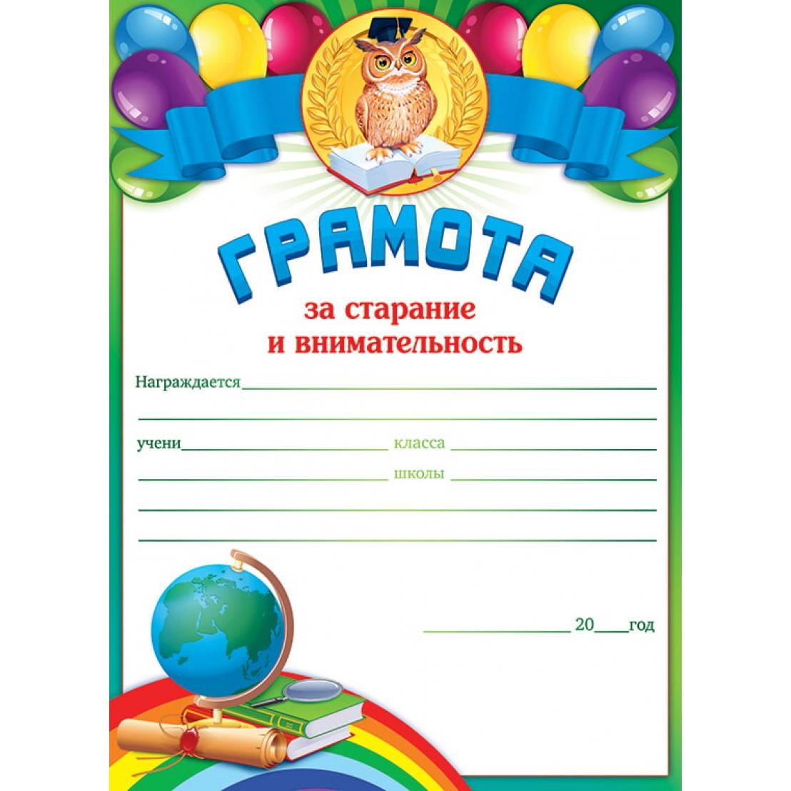 «За старание и внимательность»;