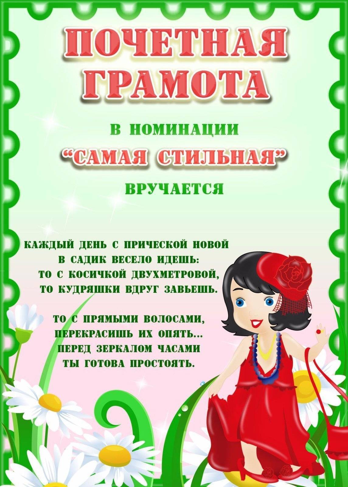 Номинация в стихах для награждения: