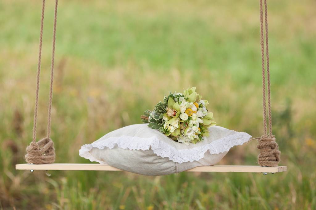 Вы можете сделать выбор в пользу классического варианта качелей, декорировав их цветами или лентами. Более креативный вариант — воспользоваться помощью профессионального декоратора и оформить качели необычным образом (например, в виде звезд на фоне неба).