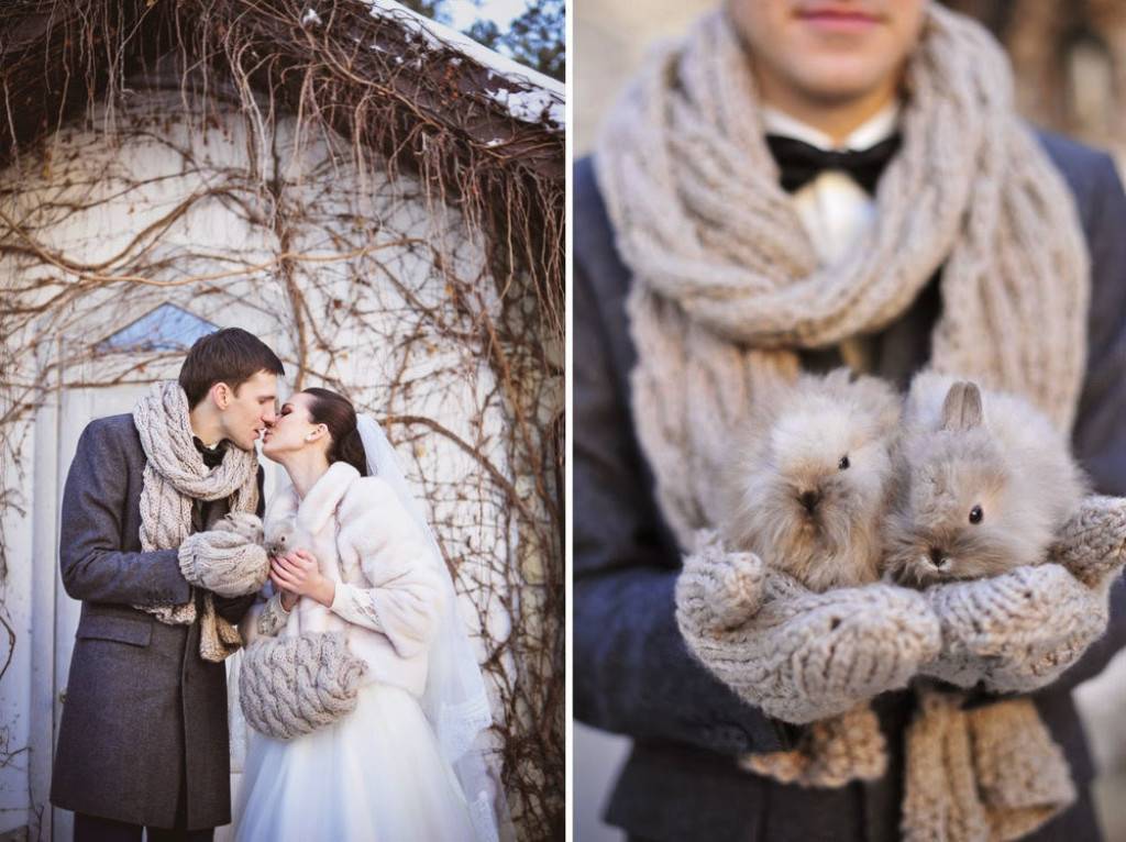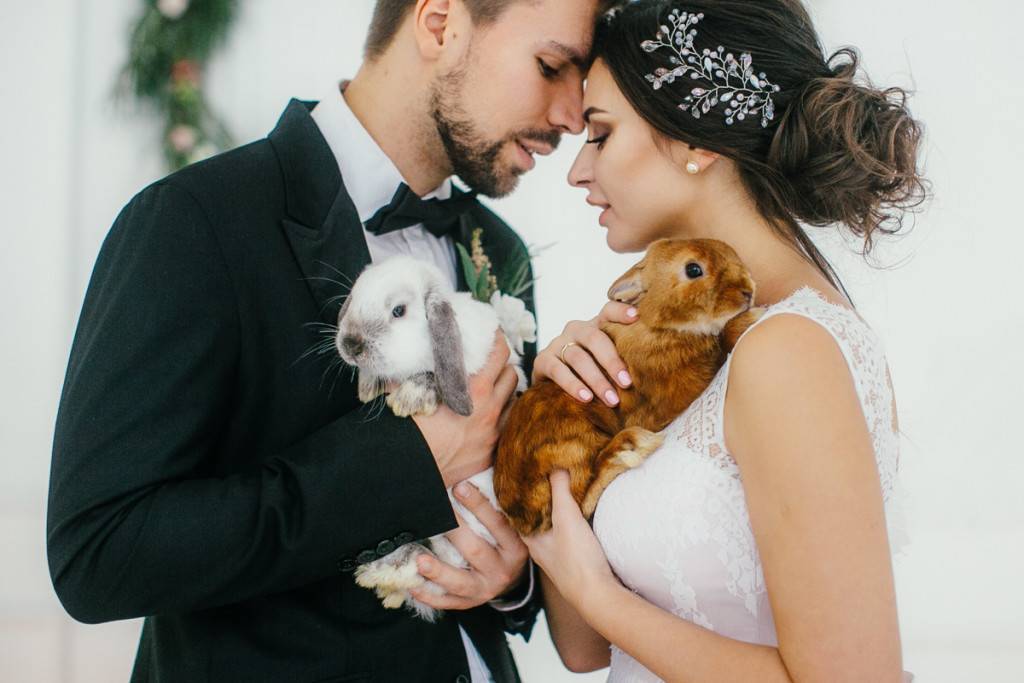 Ставшие классикой белоснежные голуби, очаровательные пушистые кролики, преданный пес или экзотический крошечный поросенок — животные сделают кадры еще более нежными, трогательными, интересными. Главное, не оставляйте живых существ в каком-нибудь вольере или клетке на весь праздничный вечер, это станет для них мукой!