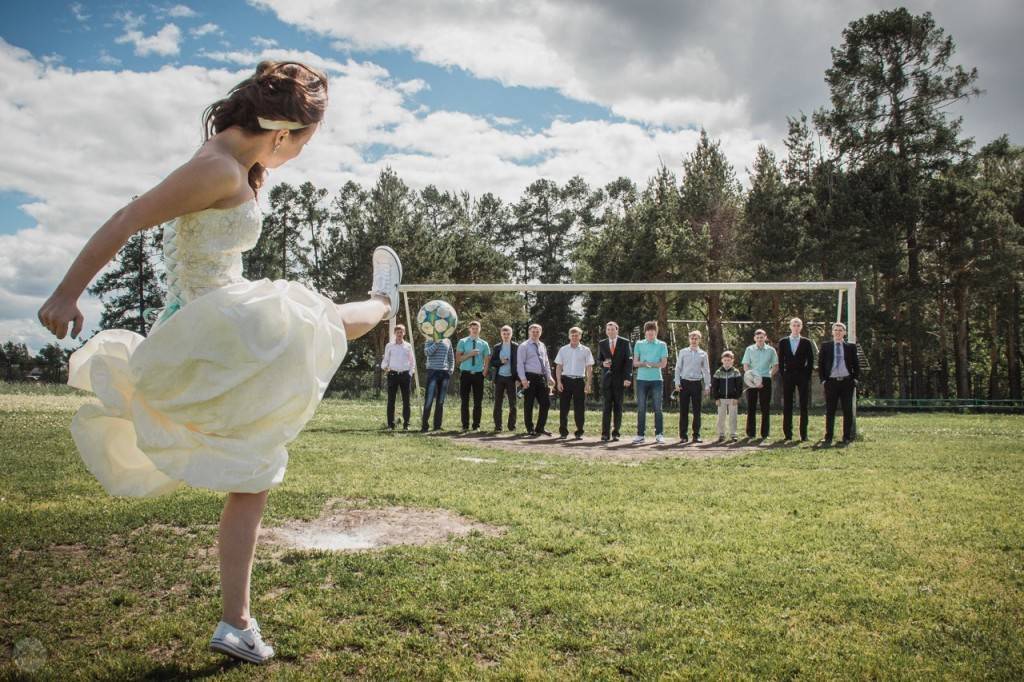 Лишний повод оставить воспоминания о своем прекрасном свадебном платье. Плюс милый жест от жениха. Подойдет любым, даже самым застенчивым парам.