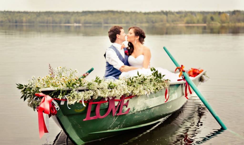 - Вторая локация, это лодка или катер. В такой обстановке вашими помощниками будут фактуры, дерево, метал, рыбацкая сетка. Всех их можно украсить при помощи цветов, или торжественных элементов декора.