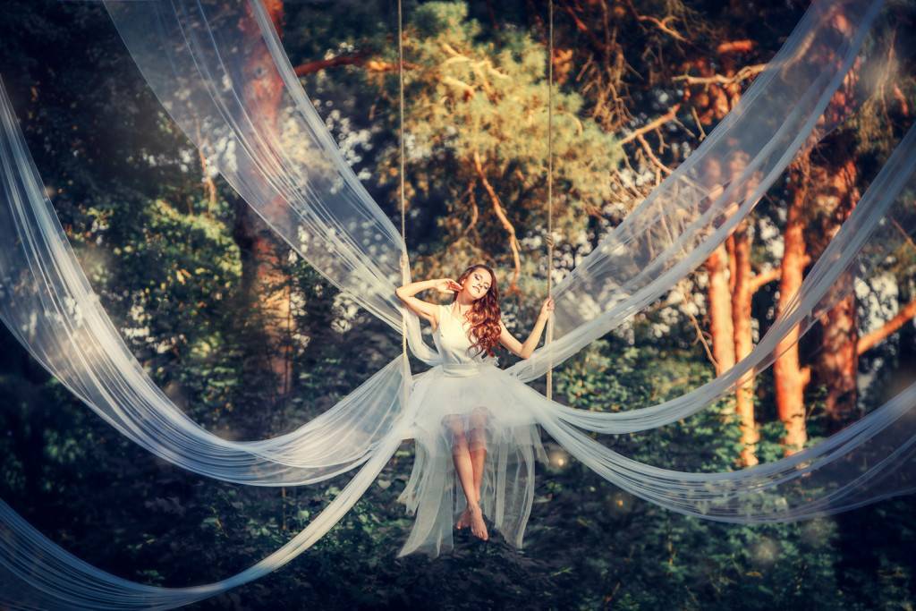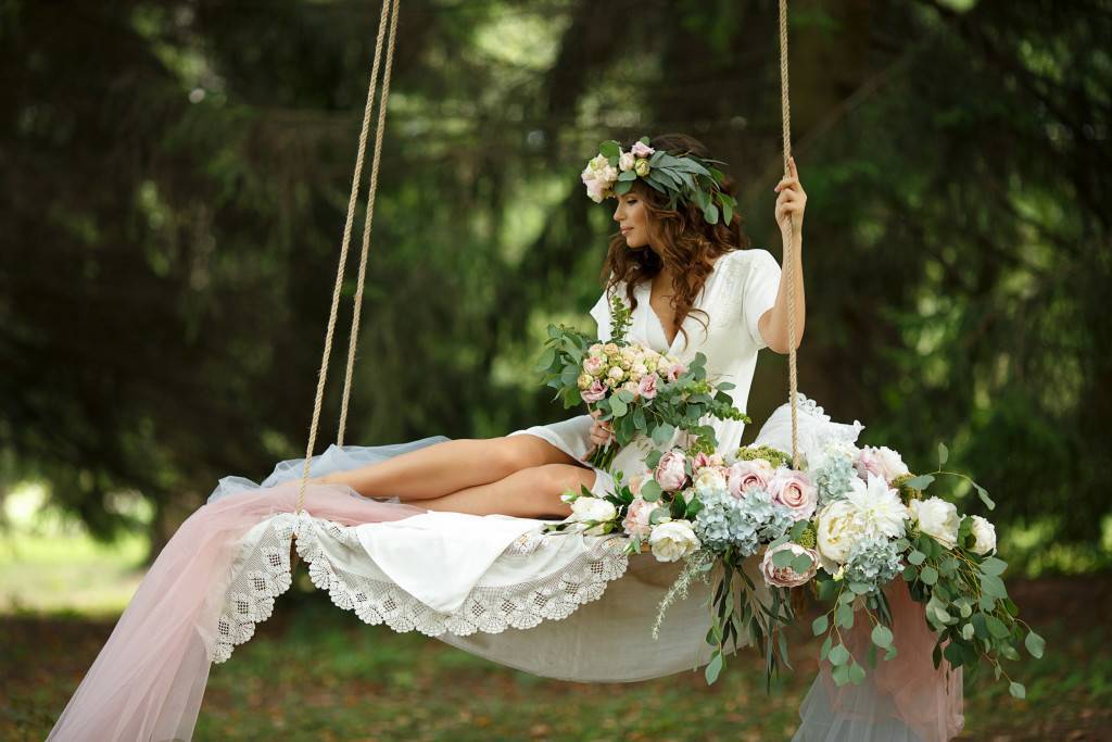 Качели на свадьбе — это отличный способ сделать живые снимки и развлечь гостей одновременно. Подобная зона для снимков — несомненный плюс для невесты. развевающееся на ветру платье будет смотреться просто роскошно.