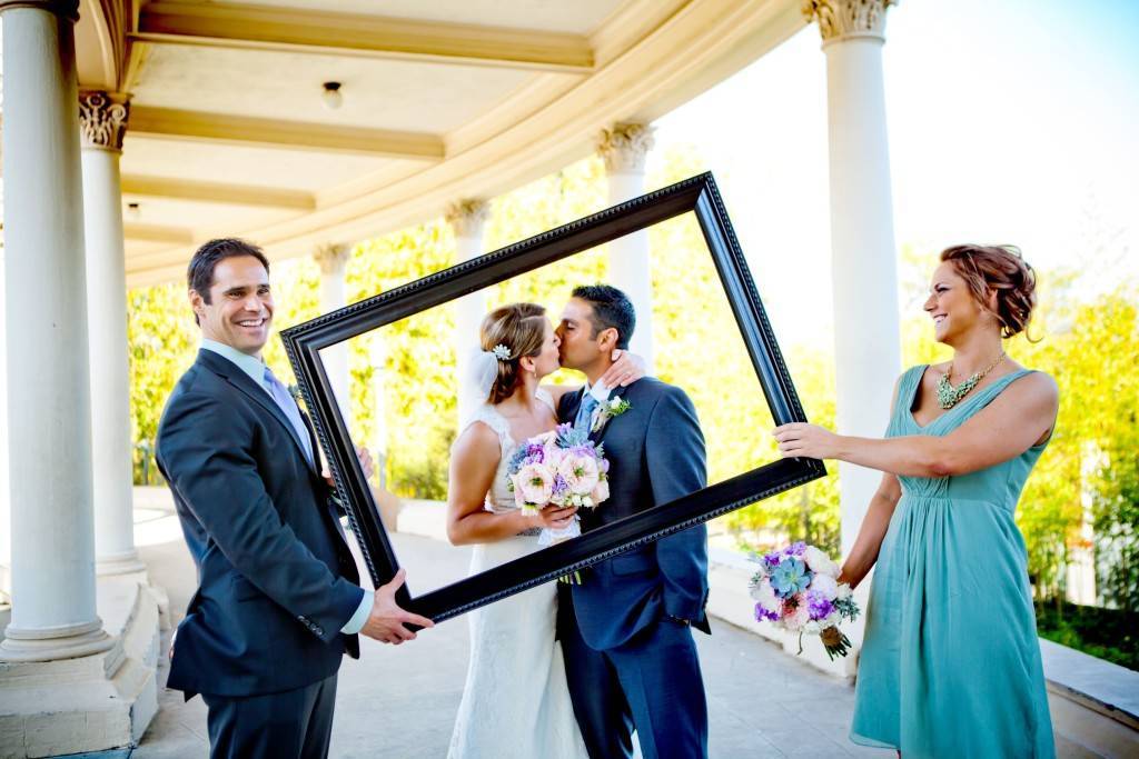 Обыкновенные рамы или багеты (вроде тех, которые “опоясывают” картины) также могут помочь вам в создании оригинальных свадебных фото. Обычно их держат в руках или крепят на деревья.