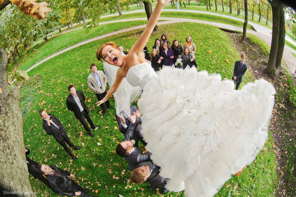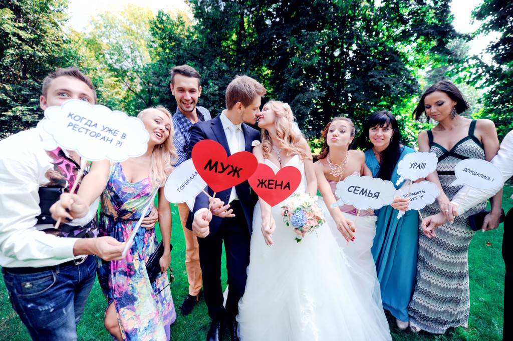 Долой банальные шаблоны при проведении свадьбы! Приветствуются различные форматы оформления зоны для фотографирования вплоть до шуточных.