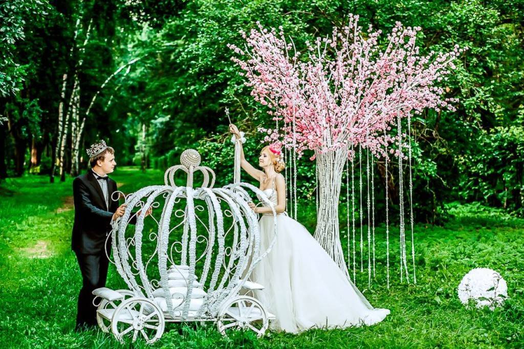 Если у вашей свадьбы есть заданная тема — будет логично продолжить ее в оформлении уголка для свадебных снимков. К примеру, к празднику в стиле ретро органично подойдет антикварная фотозона. Для свадеб по мотивам сказок или фильмов можно также оформить необычный интерьер.
