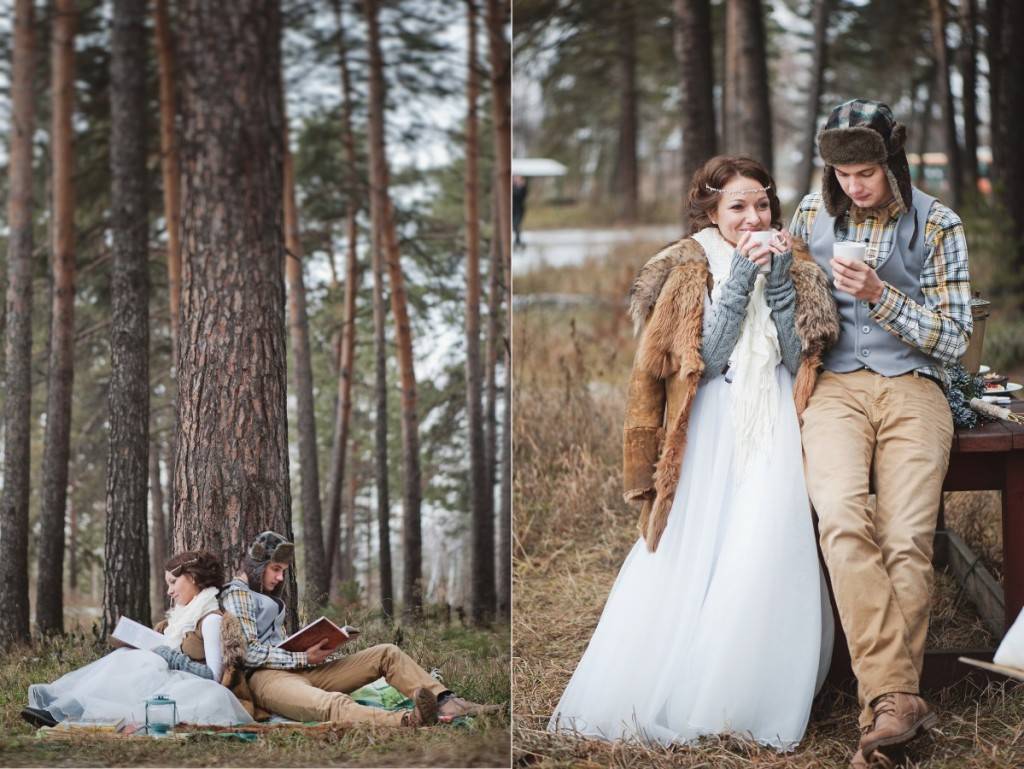 Идея с пикником подойдет для уединенной фотосессии. Чтобы создать красивые снимки, нужно правильно выбрать локацию. Это может быть спрятанная от посторонних глаз полянка в парке, берег живописного озера, а для зимней съемки подойдет красивая беседка.