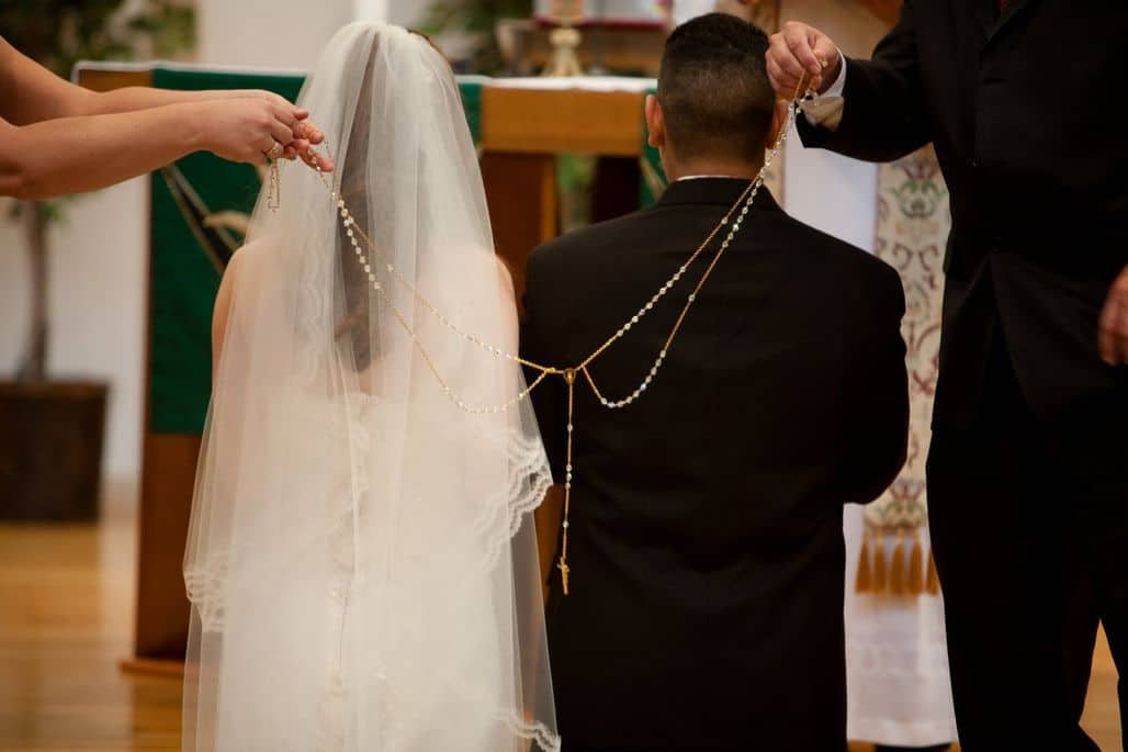 Во время церемонии жених дает своей невесте 13 золотых монет, называемых аррас, которые символизируют Христа и его апостолов. После клятвы, священник обвязывает пару веревкой, которая означает их вечное единство.