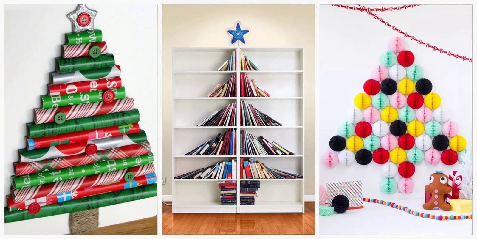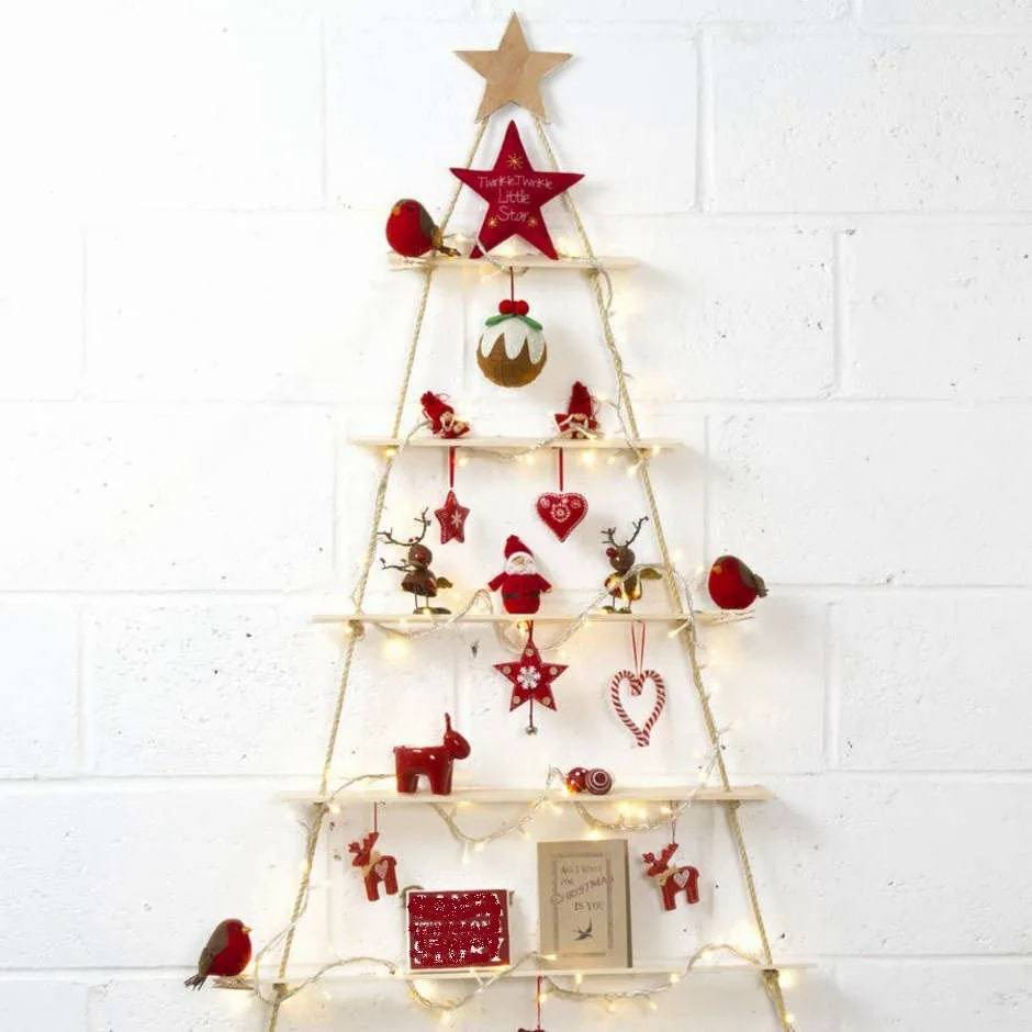 Из деревянных реек можно изготовить необычную елку. Крепим рейки на стену параллельно друг другу. Украсить гирляндой и новогодними игрушками.
