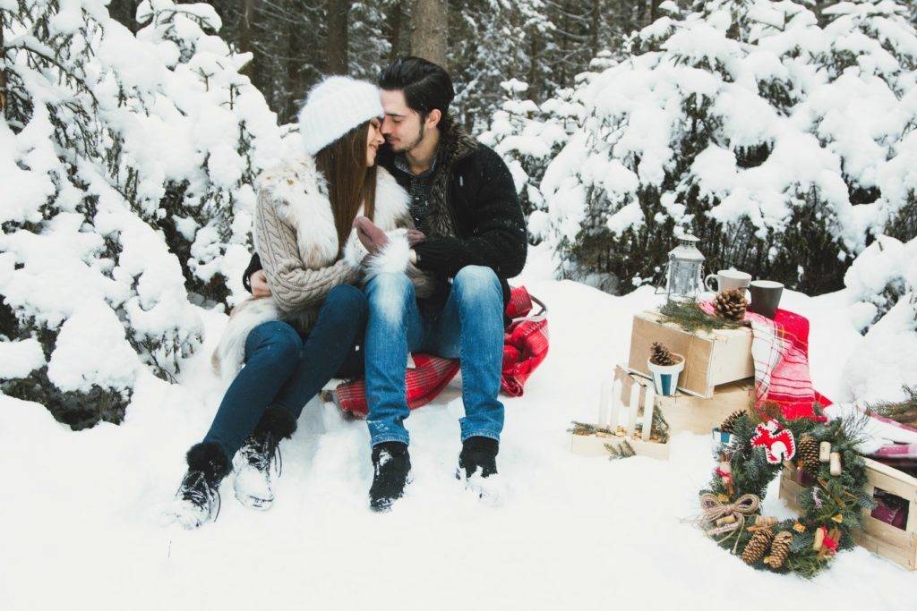 - Выбрать самое живописное место в снежном лесу или блистающем новогодними огнями парке;