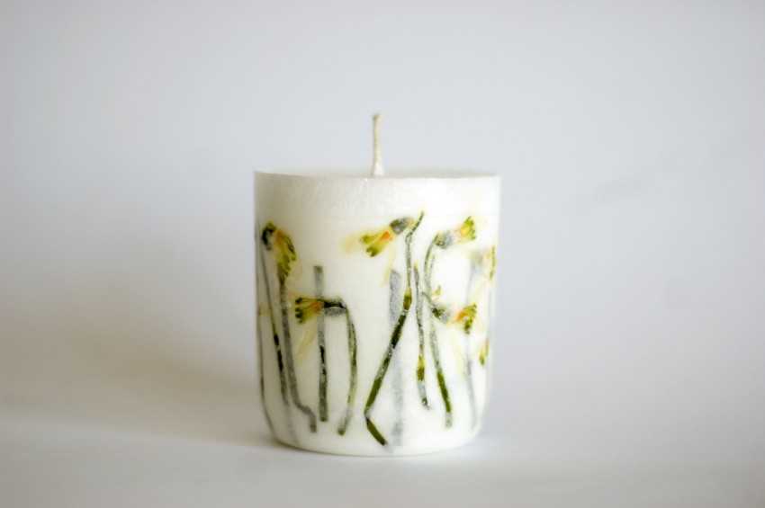 Для закрепления декора следует покрыть свечу дополнительным слоем парафина.