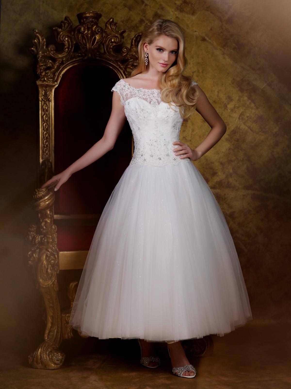 - До щиколотки. Такие платья визуально увеличивают рост и создают кукольный эффект – фигура невесты получается легкой и воздушной.