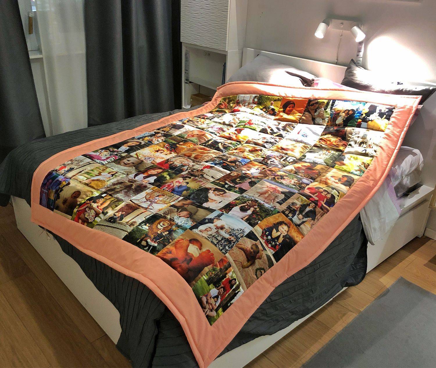 Заказать такой плед можно у специализированных типографий. Они изобразят на лицевой стороне махрового полотна вашу совместную фотографию или семейный снимок подруги.