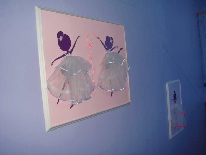 В интерьер комнаты маленькой принцессы добавит изюминку необычная объемная аппликация. Нежность, легкость, милота – это то, с чем ассоциируется данная работа. Для ее изготовления потребуются: шаблоны балерин черного цвета.