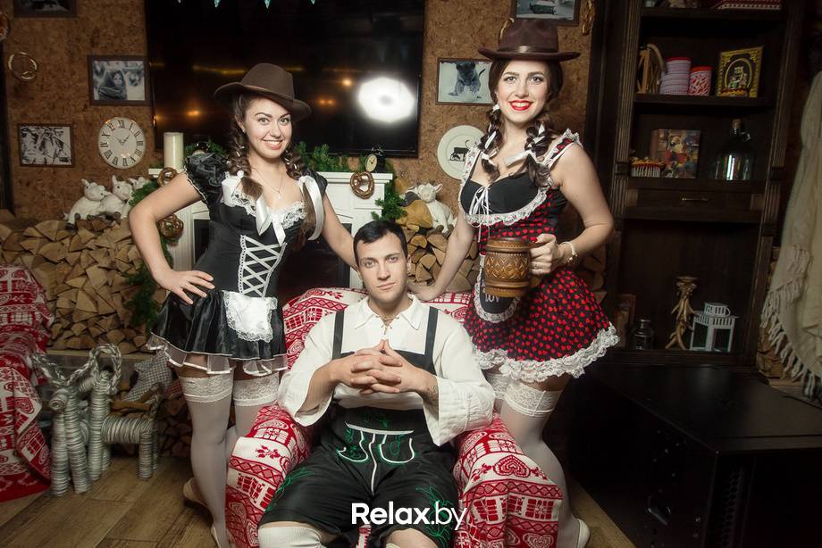 Фото с весёлого и необычного вечера должны остаться у всех гостей. Снимки в интерьере, оформленном в духе Баварии, интересны сами по себе, но лучше сделать специальную зону для съёмки.