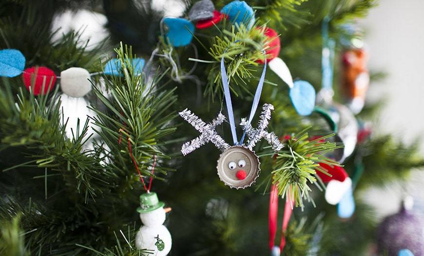 3. Жестяные завинчивающиеся крышки надо тоже тщательно помыть и обезжирить (любым спиртовым раствором). Затем ко дну банки приклеиваем маленькую елочку или другую пластмассовую фигурку. Использовать лучше всего клей «Супер Момент», тогда ничего не отвалится при многочисленной эксплуатации игрушки.