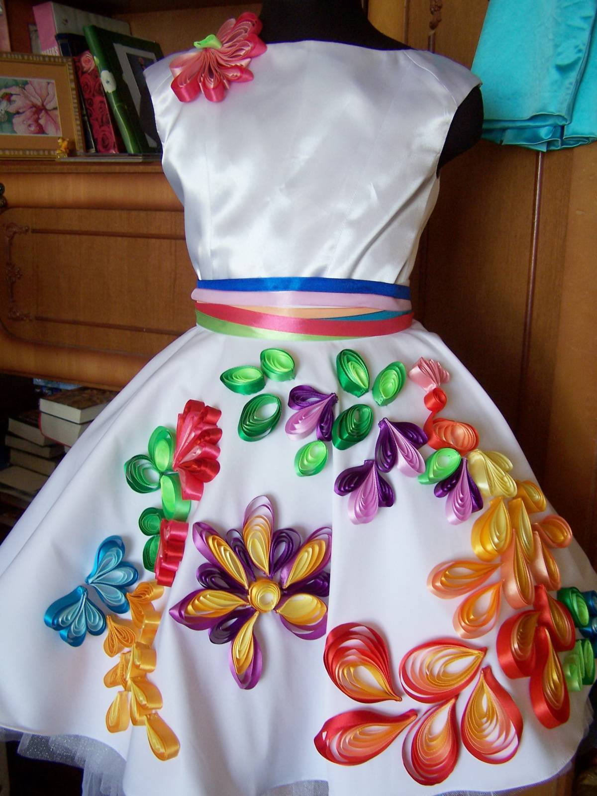 Отлично себя зарекомендовали как украшение атласные и шелковые ленты. С их помощью можно создать необычную драпировку или красивый пояс.