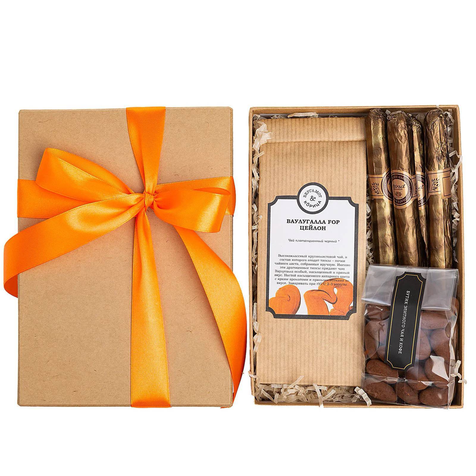 Подарочный набор для чаепития. Еще один интересный презент в оригинальном деревянном коробе. В нем полный комплект для истинного ценителя чая и его гостей: 4 чашки, чайник, а также мед, варенье, безалкогольный бальзам и чай. Цена от 7000 рублей.
