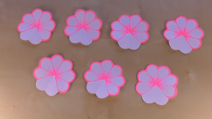 Разворачиваем деталь и получаем цветок. Возьмем яркий фломастер или гелевую ручку и раскрашиваем красиво цветок.