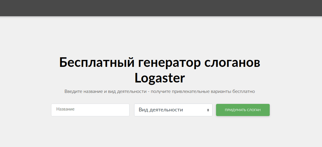 Бесплатный онлайн генератор слоганов Logaster разрешает вам создать запоминающийся лозунг компании на основе названия компании. Дабы сузить количество генерируемых слоганов, сервис предлагает указать вид деятельности