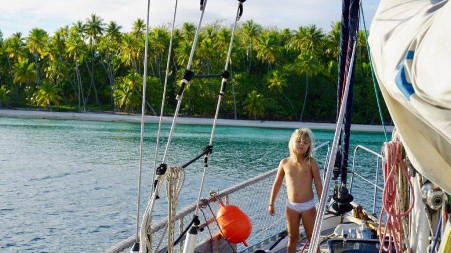 Генеральное мытье палубы до сих пор было доступно нам лишь в маринах. Последняя была в январе. Опреснитель повышает комфорт жизни на яхте почти до небес. – За несколько часов мы с детьми отдраили щетками палубу, не рискуя после умирать от жажды. И с наслаждением отужинали рисом и рататуем от главного кока с видом на только наш кусочек атолла. Клочок суши зарос кокосовыми пальмами и другими деревьями. Молочные пляжи и извилистая протока. Вечерами по кромке воды расхаживает белая цапля, днем птицы галдят над головами или куда-то прячутся. Чистый рай.
