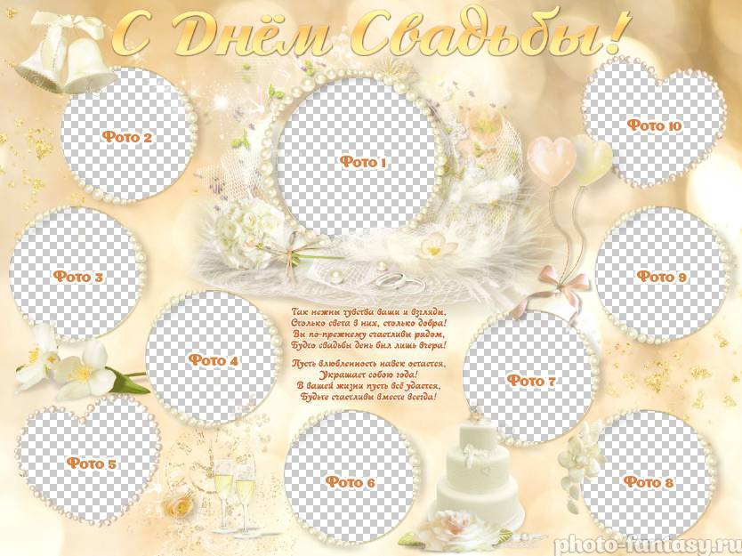 Фотографии мужа и жены будут размещены в золотистых рамочках и жемчужном сердце. Добавьте на плакат лучшие фотографии с момента знакомства, фото со .