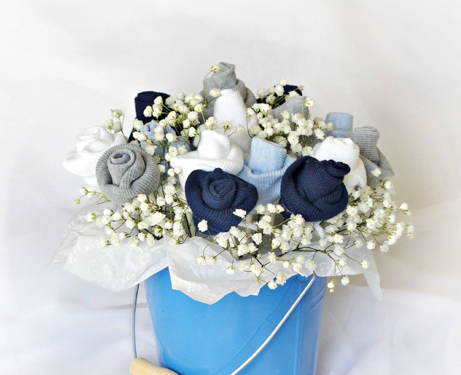 Вариантов оформления готовых букетов из носков множество.
