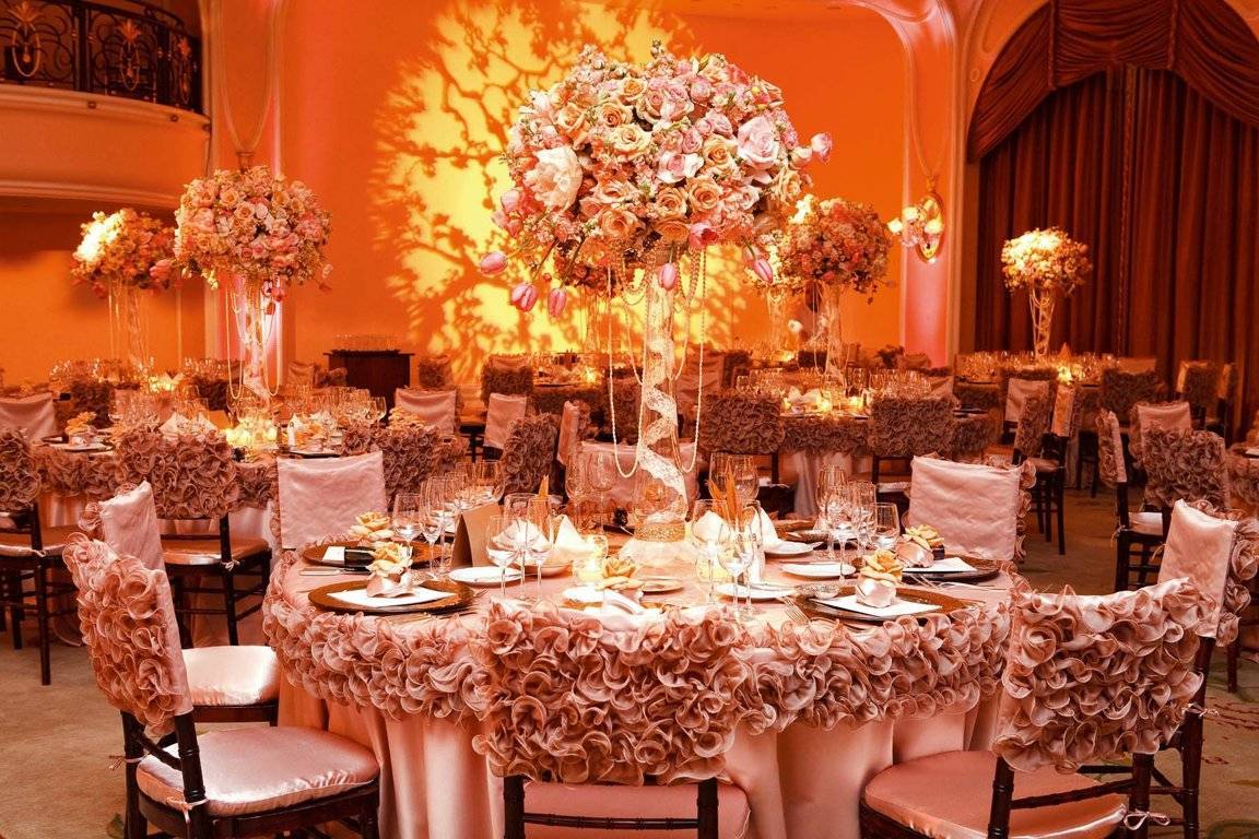 Прежде чем пользоваться нашими следующими советами по поводу расстановки столов, внимательно и объективно оцените организацию вашей свадьбы. Вы должны быть уверены в том, какое количество гостей как придет, так как это будет влиять на размеры зала, необходимые для того, чтобы каждый удобно разместился. На организацию расстановки столов влияют такие факторы, как размер, высота от пола до потолка и форма помещения.