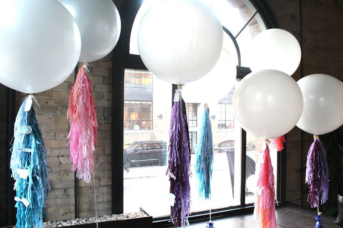 - К хвостику шарика можно прикрепить пару «ниток» серпантина.
