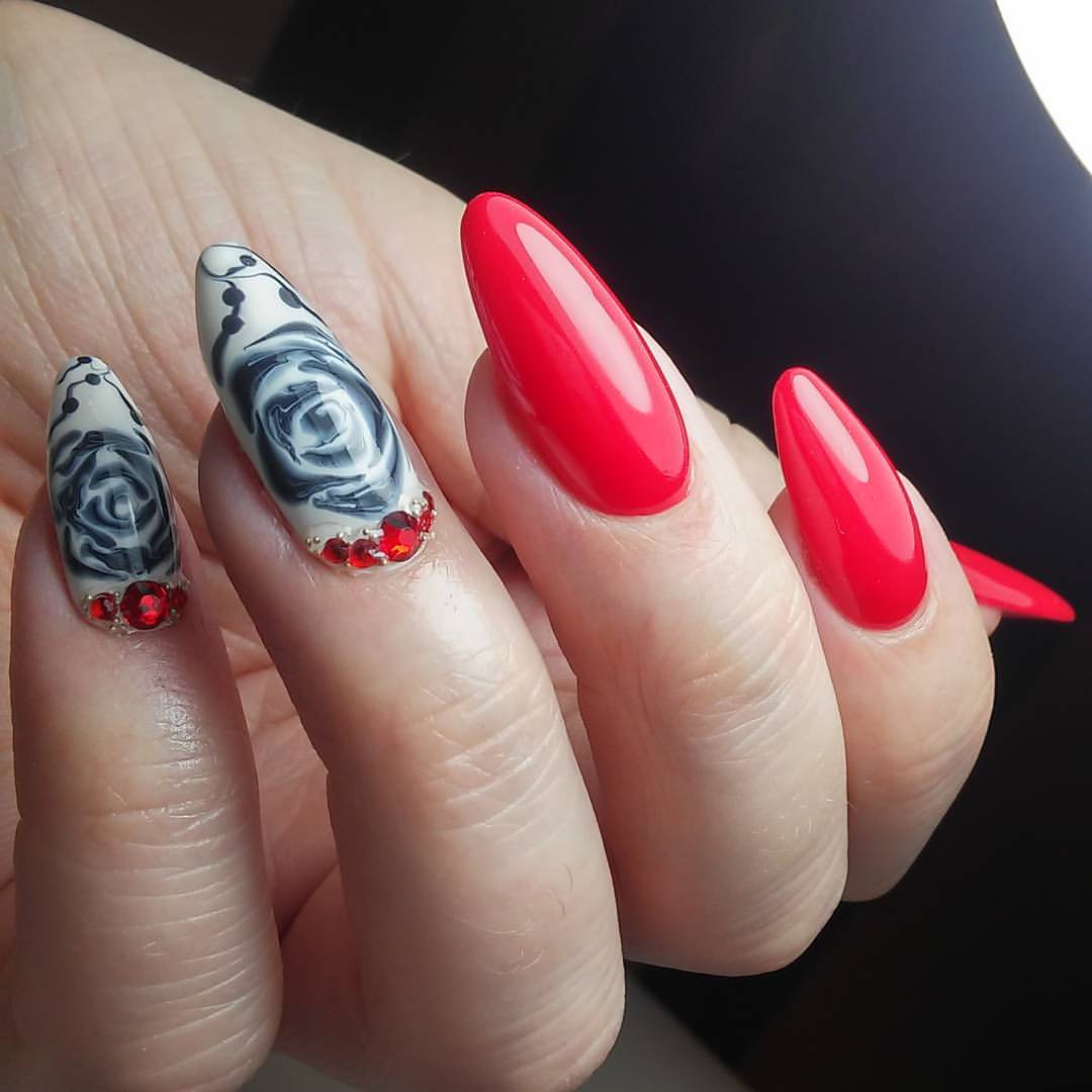 Каждая кокетка знает, что красный цвет – оттенок страсти и желания, поэтому и маникюр с таким цветом будет «пылать». Оттенки красного, как в одежде, так и в маникюре всегда остаются в тренде, из сезона в сезон и позволяют девушке выглядеть неподражаемо. Для того чтобы разнообразить однотонный красный маникюр на день рождения, фото которого можно найти в сети Интернет, можно добавить чуть-чуть оригинальных белых узоров на одном ногте или покрасить его в другой контрастный цвет. Такой маникюр придаст образу немного игривости к праздничному настроению. Если же вы не умеете рисовать, тогда вы можете ограничиться обычными геометрическими узорами: ромбами, штрихами, квадратами или кругами. В конце нужно покрыть ногти закрепляющим лаком.