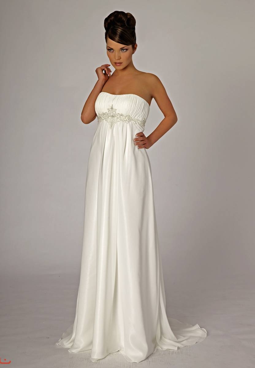 Эти наряды для беременных выглядят более простыми, нежели греческие. Практически все модели отличаются максимальной длиной, завышенной линией талии, лаконичностью и минимумом декораций. Изделие имеет закрытый лиф, но он может быть больше, если срок беременности уже поздний, верх платья лучше выбрать широкий. Это поможет уравновесить пышную грудь.