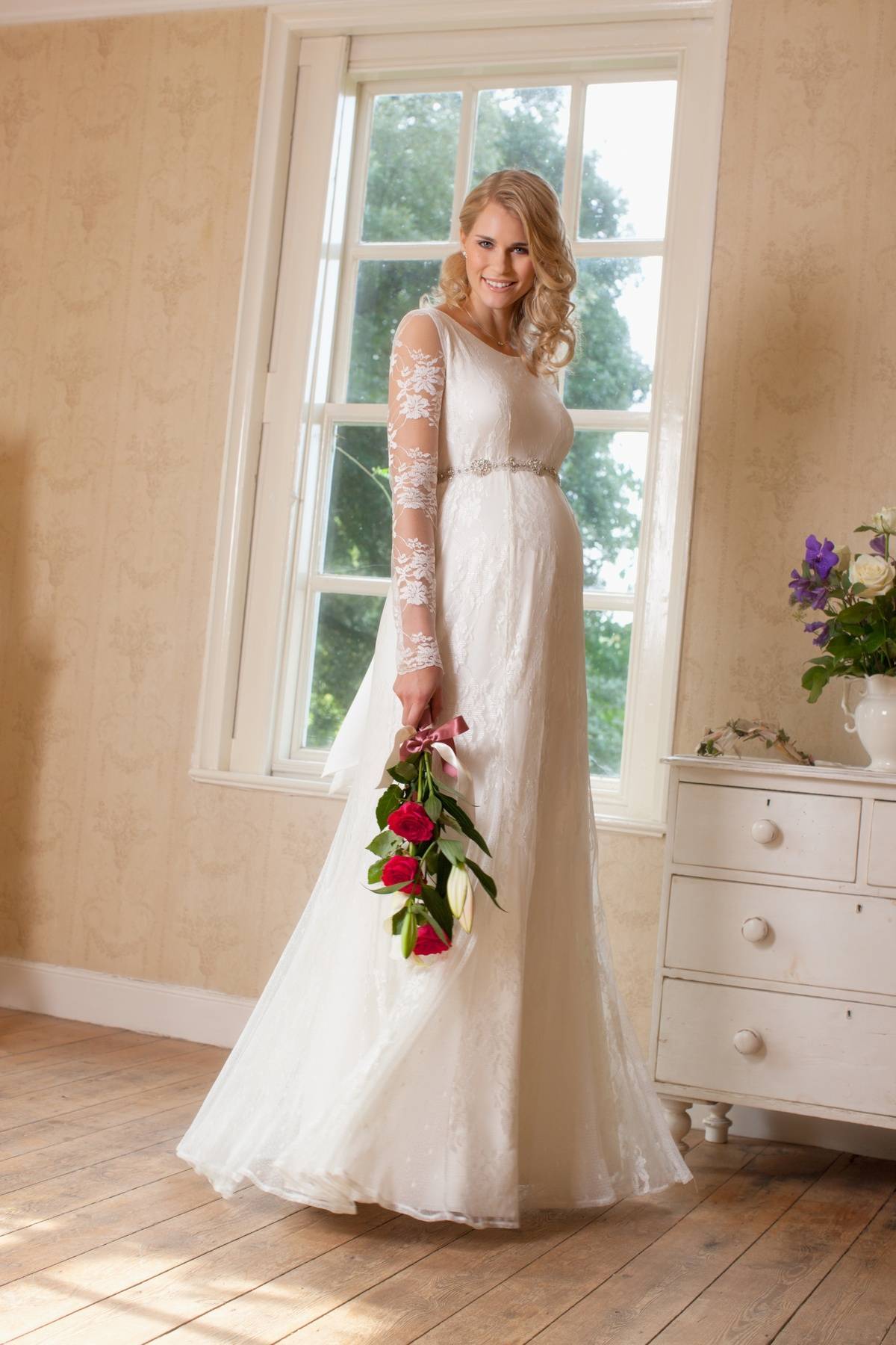 Выбирая для беременных оригинальное подвенечное платье, можно обратить внимание на лаконичные модели. Обилие декора, объемные рукава сделают фигуру слишком пышной, что не уместно при округлившихся формах. Сдержанные фасоны в пол могут и без декораций выглядеть роскошно