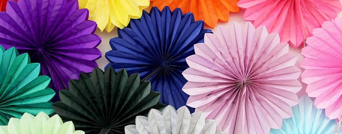 На доску двусторонним скотчем прикрепите фанты (это яркие круговые вееры). На их фоне получаются очень красивые фотографии. Они тоже продаются готовые, украшать ими легко и приятно.