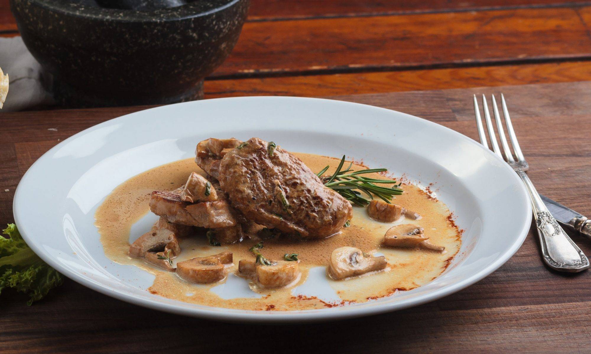 Название «Сметанный с грибами» говорит само за себя. Сочетание сливочного вкуса указанных компонентов придаёт мясным блюдам особый шарм.