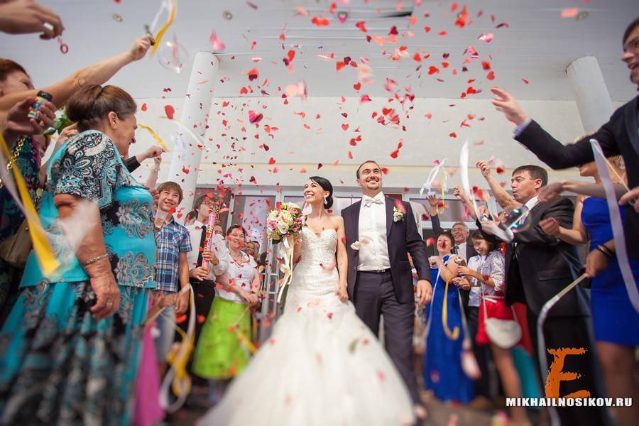 - подготовьте лепестки цветов, серпантин или блестящие конфетти для встречи молодоженов;