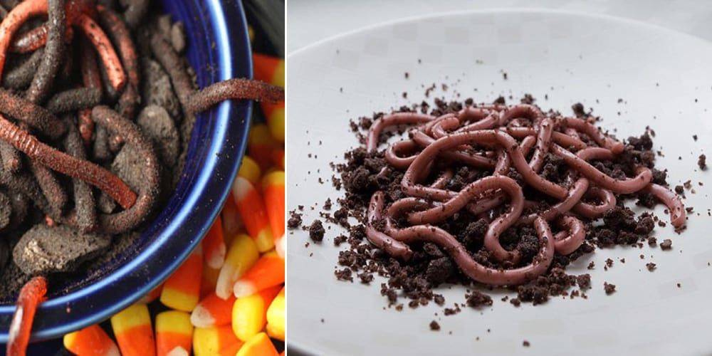 Червячки — очень тематичное и невероятно вкусное блюдо. Оно очень эффектно смотрится на праздничном столе. К тому же, делается сладость очень просто.