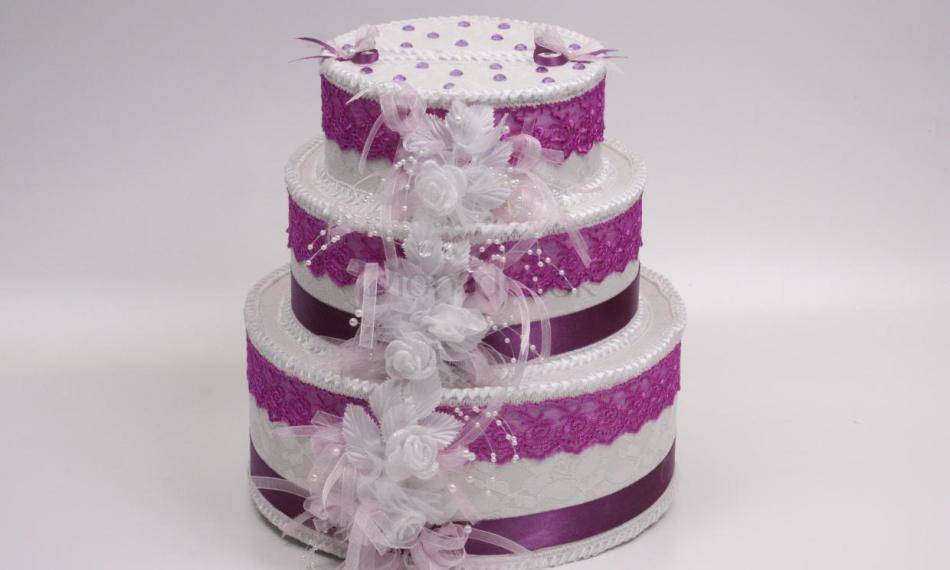 Нежная коробка для денег в виде трехъярусного круглого торта
