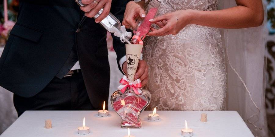 Песочная церемония – это трогательный обряд, который объединяет молодых супругов. Жених и невеста выбирают «свои» цвета