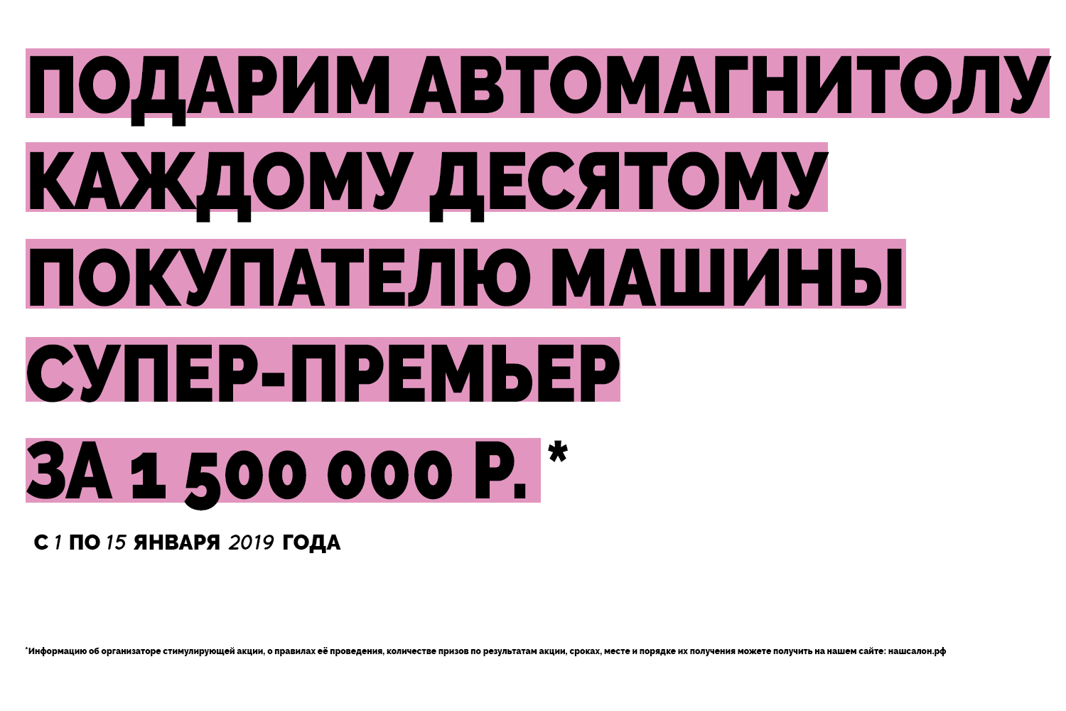 приобрести автомобиль марки «Супер-премьер» в максимальной комплектации за 1 500 000 рублей в одном из салонов организатора розыгрыша.