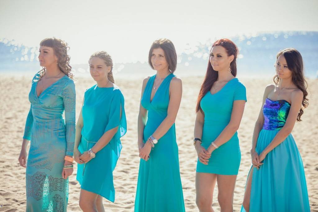 Для невесты лучшим выбором станет атласное платья с глубоким V-образным декольте на спине, фасона русалка. Не забывайте про богатые, блестящие украшения.