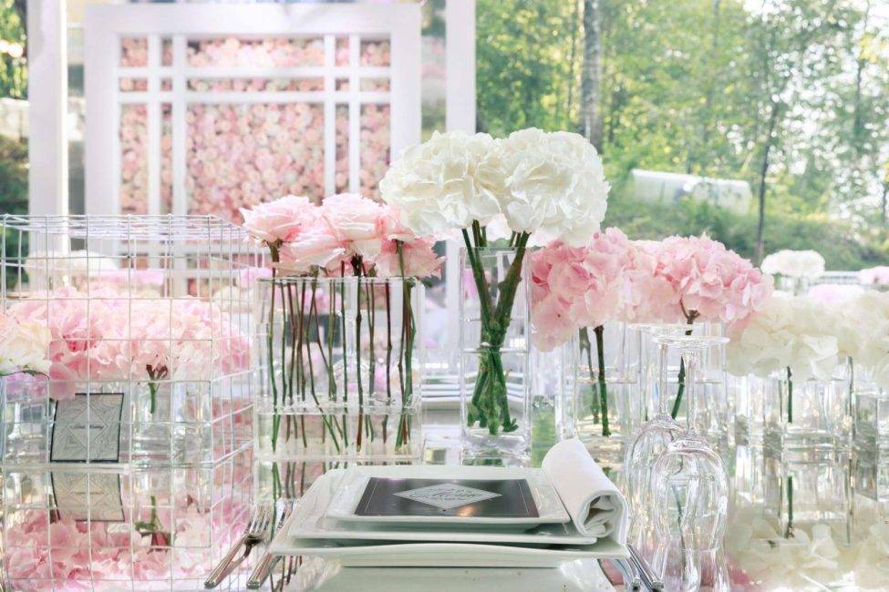 - Проследите за размерами букетов и цветочных композиций на столах. Их оптимальная высота – не выше 30 см.