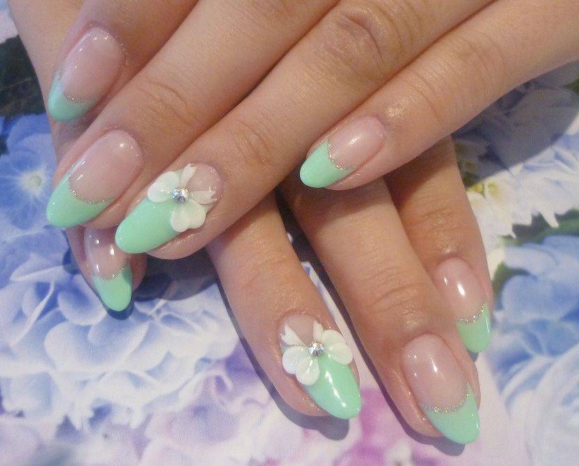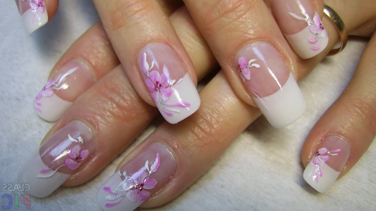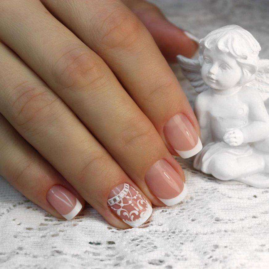 Классика – французский маникюр, который можно разбавить нежными цветочными узорами;