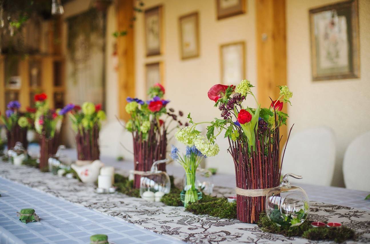 - Не забывайте об украшении дома: красиво расставленные букеты, шары, плакаты, драпировки из ткани на столах.