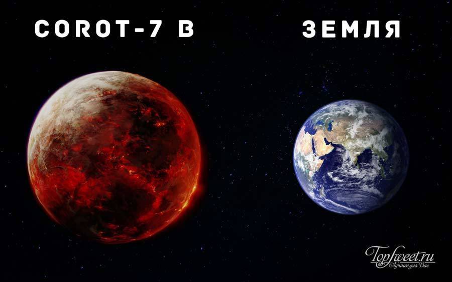 Сравнительные размеры планеты CoRoT-7 b и Земли